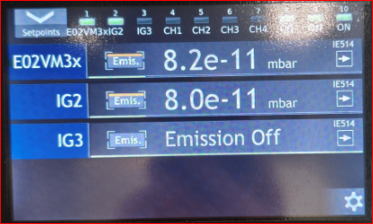 The ion pumps (E02VP16i and E02VP17i) which nearby the optical detection region produce high count rate into the photomultipiers. Therefore they were turned off on May 5th by our colleague from UHV (Herr Mia). He checked the vacuum before (EIN) and after (AUS) turning off the pumps.