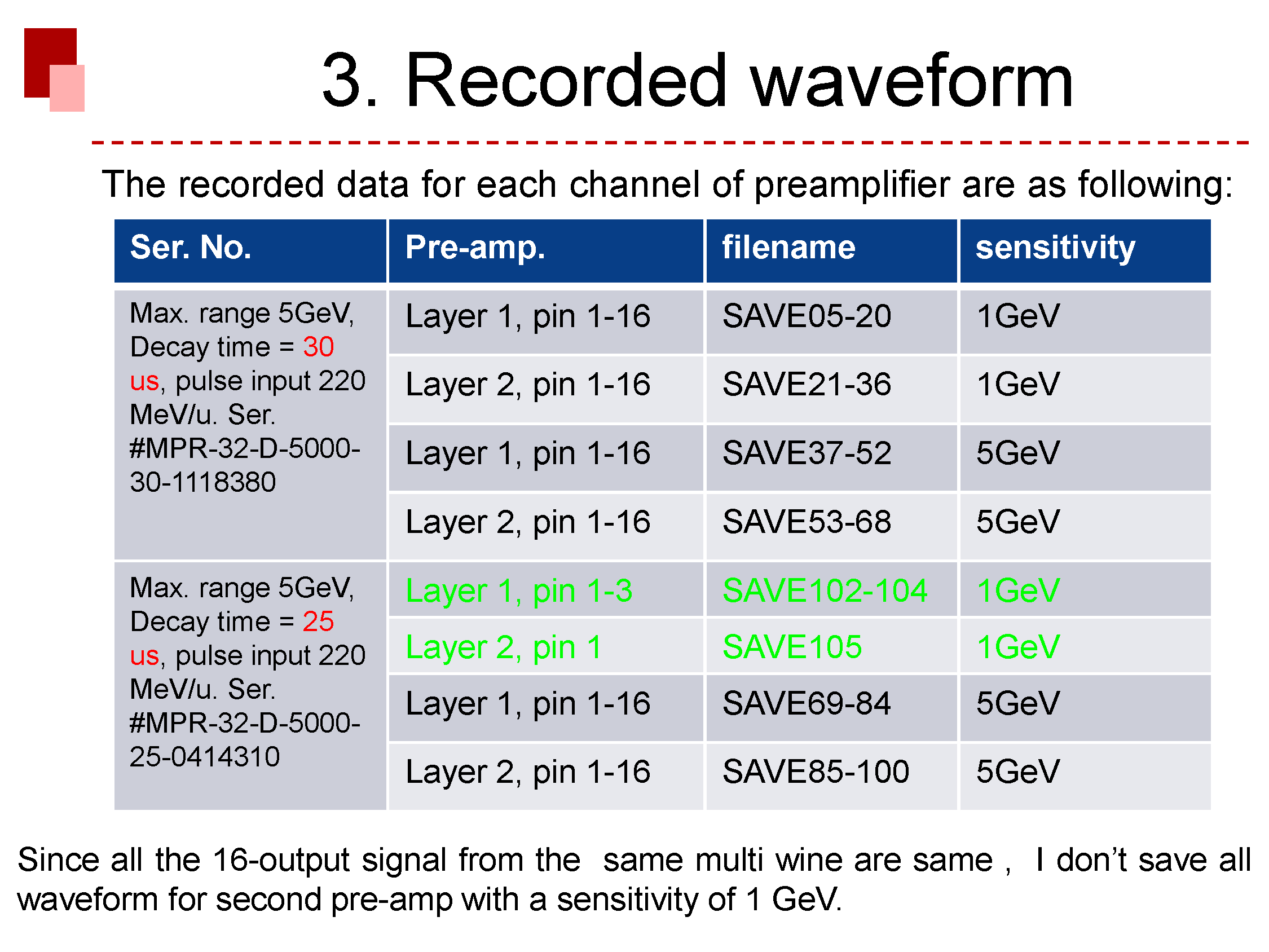 New: Max. range 5GeV, Two sensitivity options: 1 GeV and 5 GeV, Decay time = 30 us, pulse input 220 MeV/u, Ser. #MPR-32-D-5000-30-1118380.