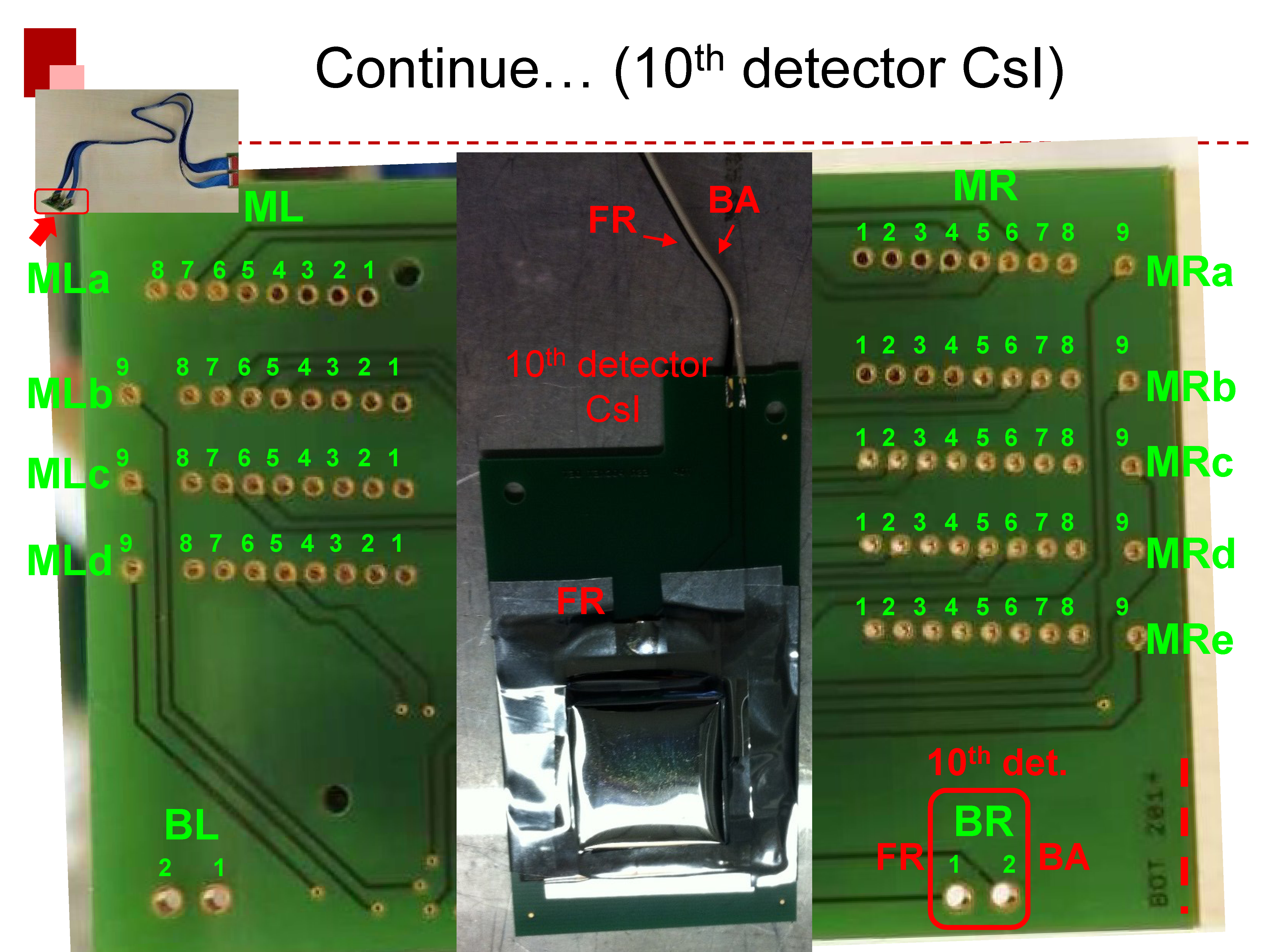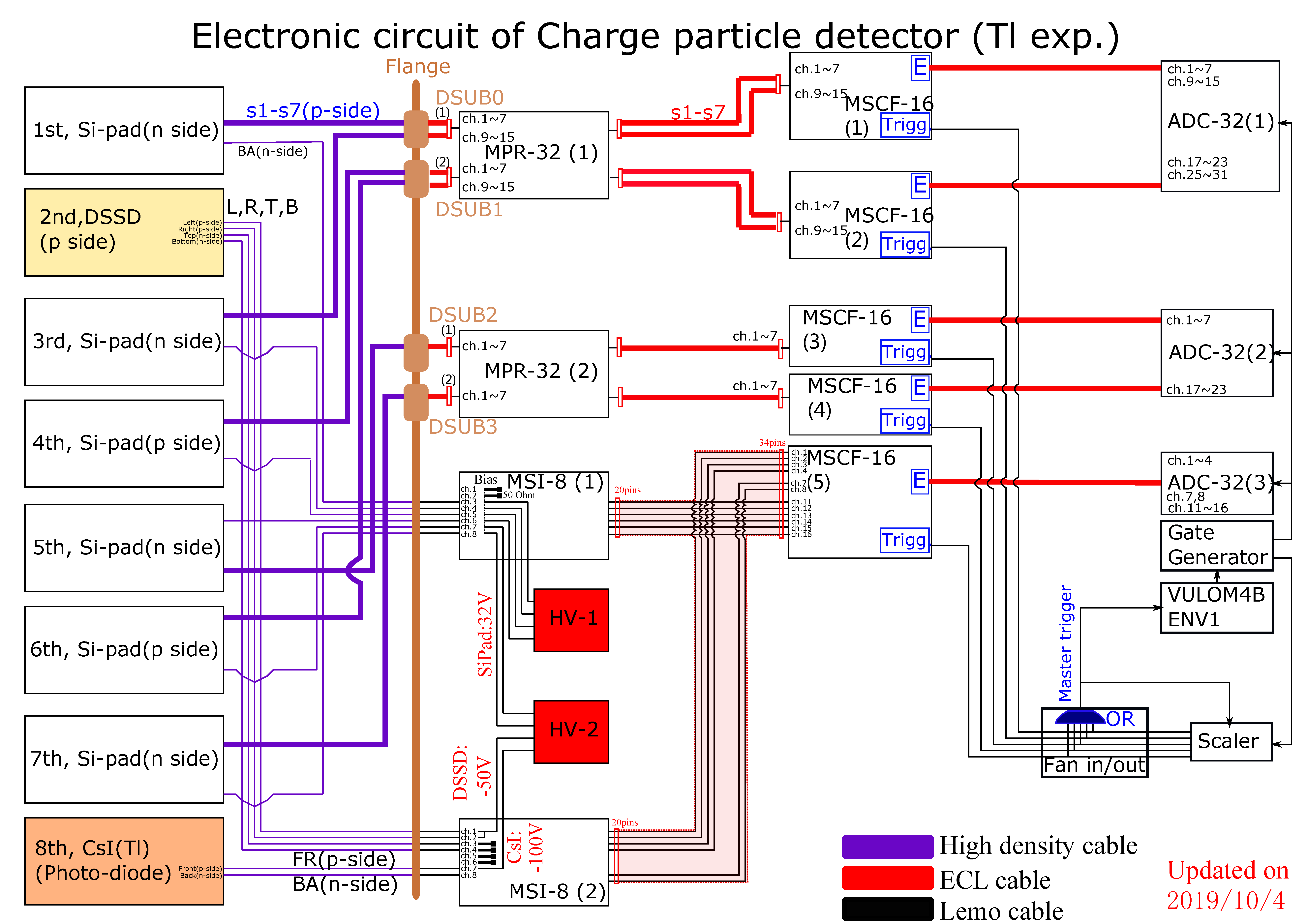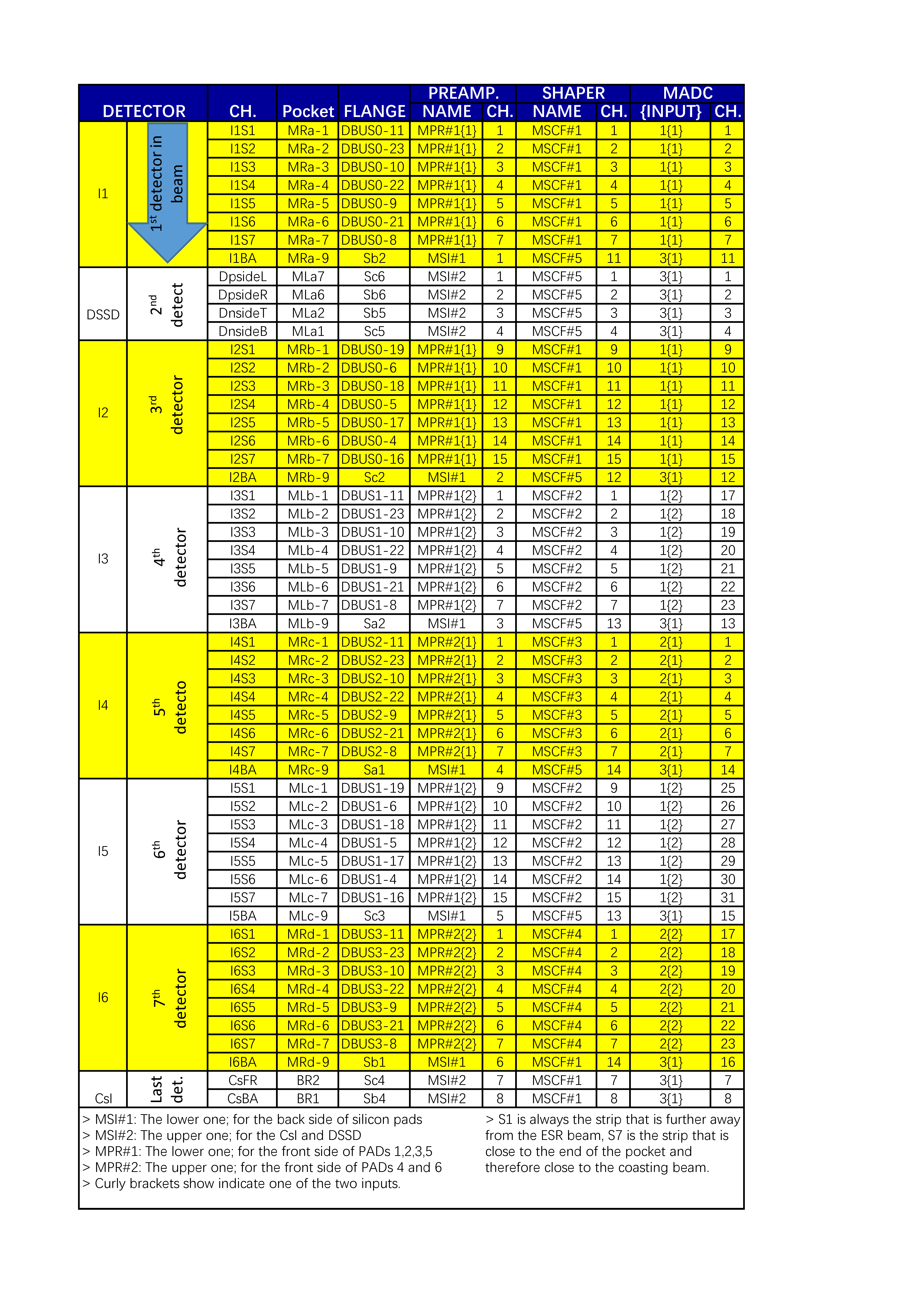 Here is a summary of signal map. The charged particle detector includes 6 layers of Si-Pad, 1 DSSD and 1 CsI.