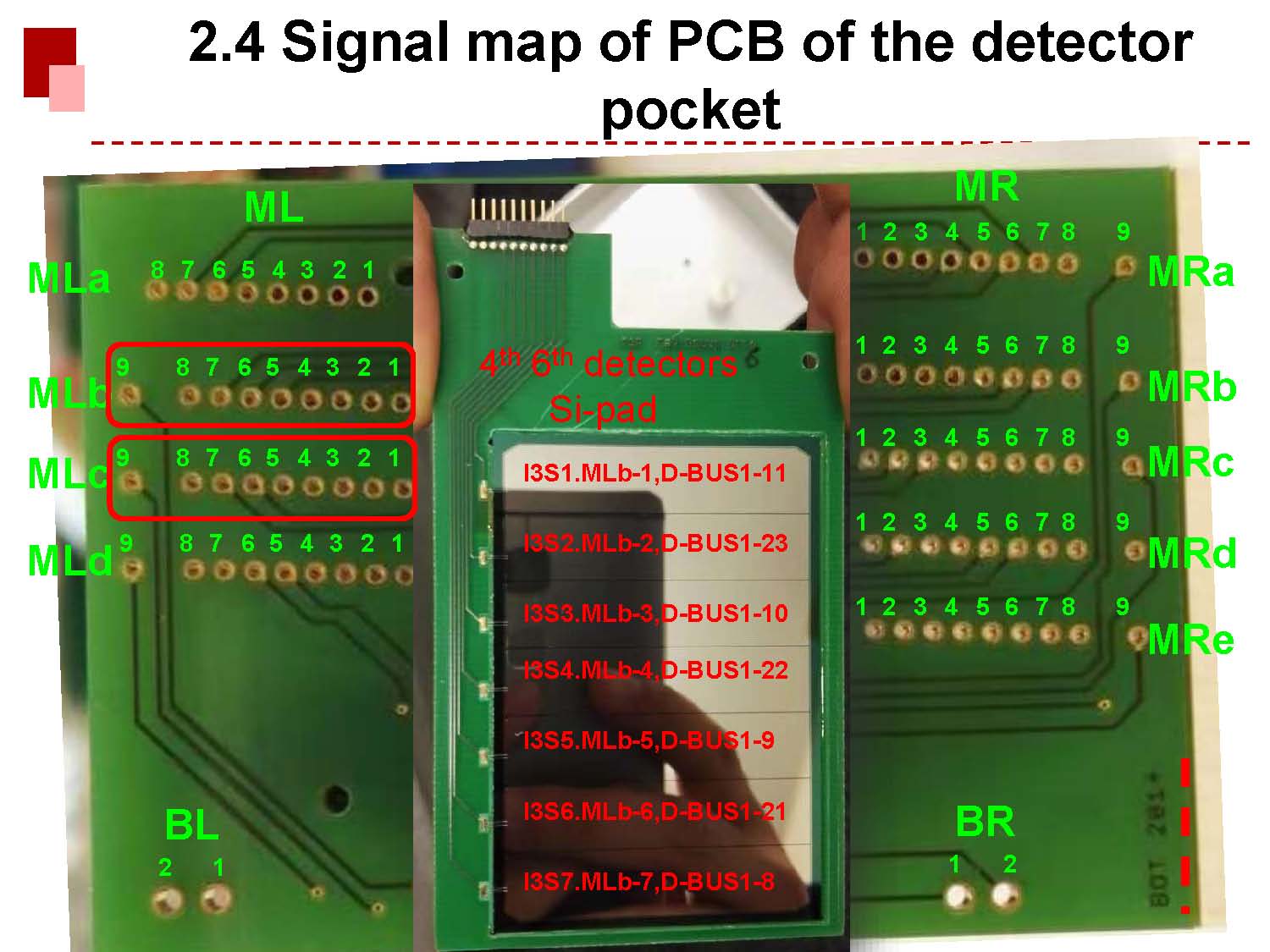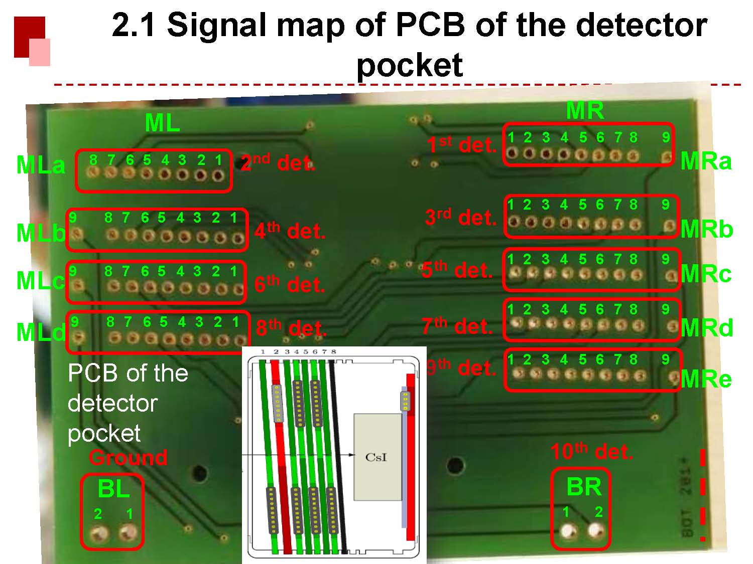 The signal maps of the PCB of the detector pocket are shown as follow: