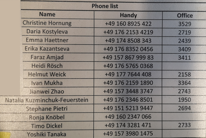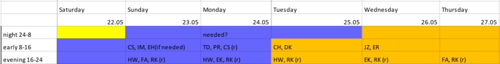 FRS shiftplan, name abbreviations and phone list